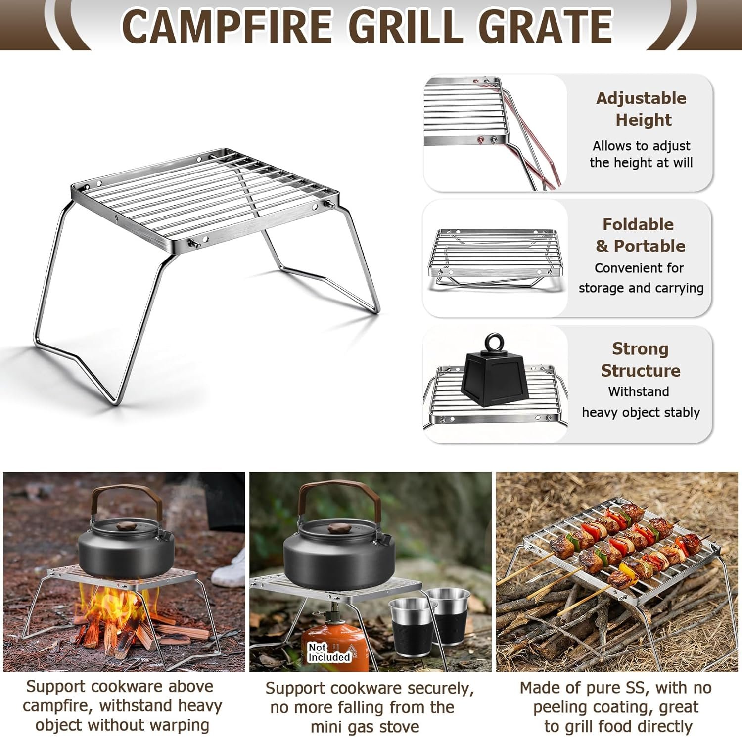 Customer signal: customer reviews indicate the grate resists deformation at high temperatures but will blacken (surface carbonization) — bring a grill brush or scrubbing pad for post-use cleaning. Based on verified buyer feedback, the grate adds significant practical value for campers who prefer open-fire grilling over using a separate portable stove.