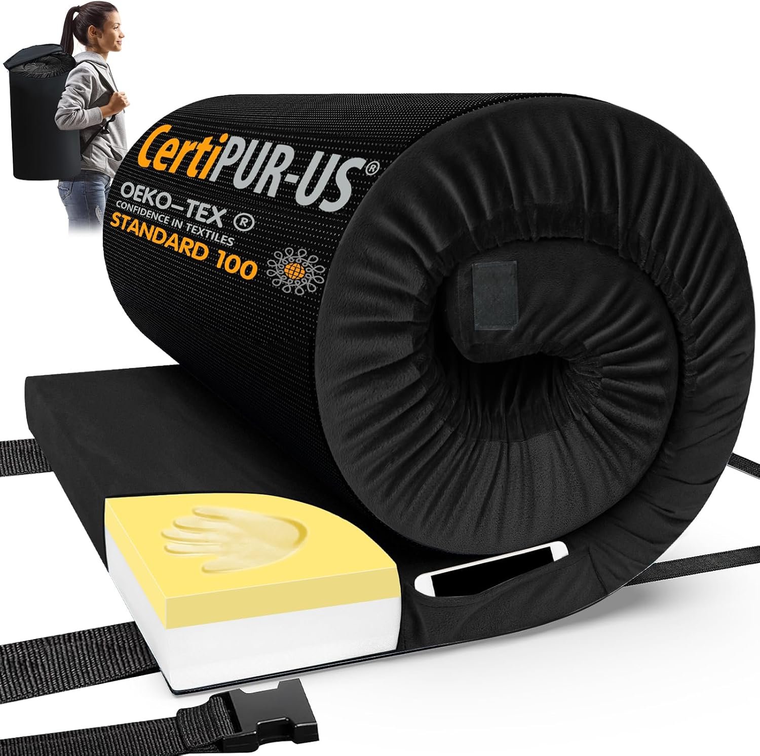 This product lives or dies on a handful of practical features, and the listing is clear about them: 3-inch high-density memory foam, CertiPUR-US certification, a waterproof non-slip bottom, and portable roll-up storage with straps and a travel bag. That combination is aimed at shoppers who don’t want a technical expedition pad; they want a more forgiving surface for car camping, indoor guests, or occasional overnight use.