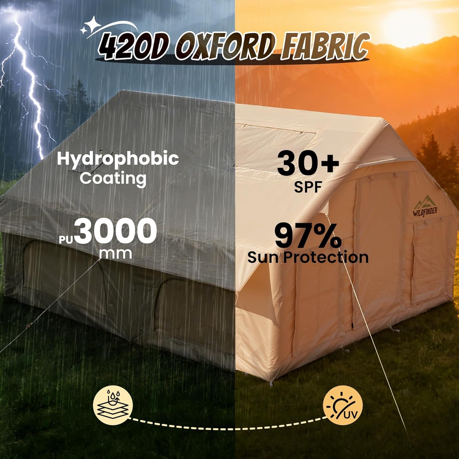 If you’re considering this Inflatable Tent with Skylight, the big question is simple: does a large air-beam hot tent really justify a $519.99 sale price? According to the listed product data, you’re getting a 157″ x 118″ x 78″ shelter with 129 square feet of floor area, 420D Oxford fabric, PU3000mm waterproofing, a PVC panoramic skylight, and a built-in stove jack. That’s a lot more than a basic family tent.
